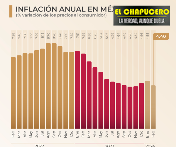 En el caso de las actividades primarias, la disminución de los precios fue menor, con una caída de apenas 0.04% respecto a febrero del 2023.