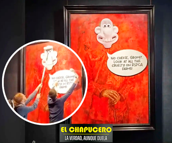 Medios locales publicaron que los manifestantes pegaron sobre el rostro del retrato, creado por el artista Jonathan Yeo, la imagen del personaje animado Wallace, de la película ‘Wallace y Gromit’, así como un mensaje sobre la crueldad en la RSPCA: «Sin queso, Gromit. ¡Mira toda esta crueldad en las granjas RSPCA!«.