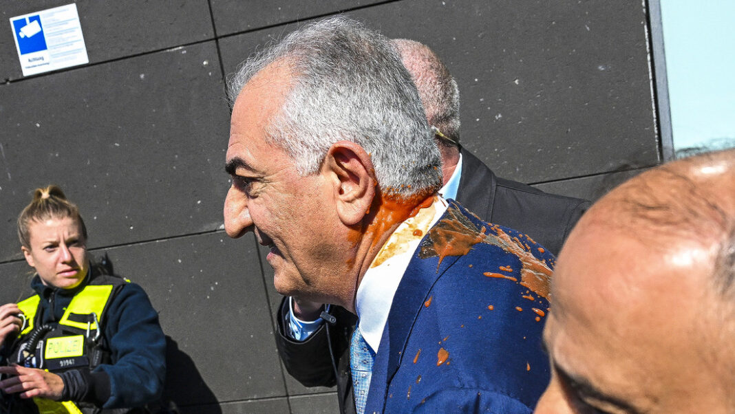 El príncipe Reza Pahlaví, hijo del último sha de Irán y principal opositor en el exilio, fue rociado con un líquido rojo similar a zumo o salsa de tomate este jueves en el centro de Berlín.