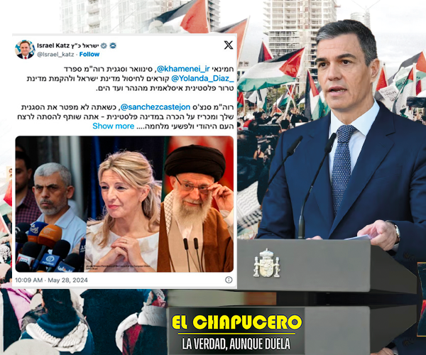 El canciller israelí equipara al líder supremo de Irán, Alí Jamenei, y al actual líder de la organización Hamás, Yahya Sinwar, con la vicepresidenta segunda de España y ministra de Trabajo, Yolanda Díaz, al afirmar que los tres «piden la eliminación del Estado de Israel y el establecimiento de un Estado terrorista islámico palestino desde el río hasta el mar».
