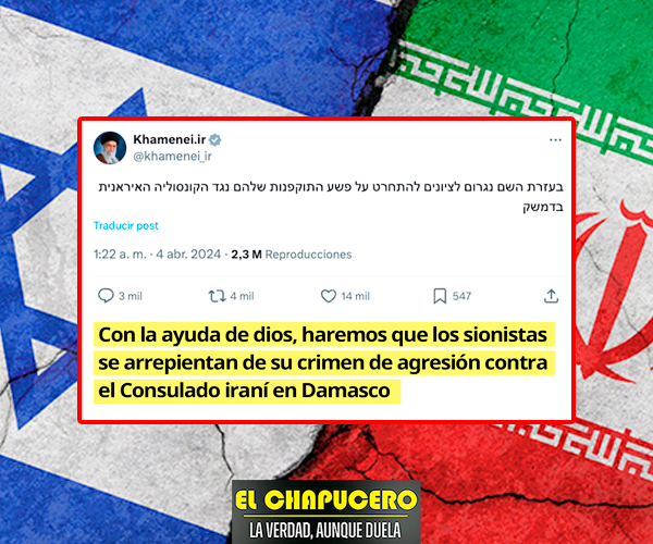 «Con la ayuda de dios, haremos que los sionistas se arrepientan de su crimen de agresión contra el Consulado iraní en Damasco«, reza el mensaje.