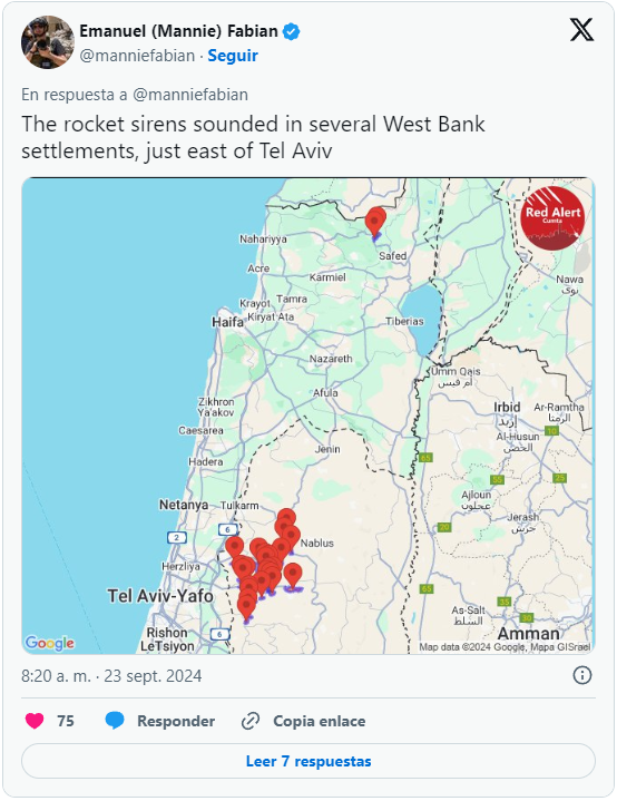 Un ataque con al menos 10 misiles de largo alcance lanzado desde el Líbano ha provocado la activación de las sirenas antiaéreas en diferentes localidades de Cisjordania, incluidos los asentamientos israelíes de Karnei Shomron y Ariel. Se trata de la primera vez desde el 8 de octubre del año pasado que se utiliza este tipo de armas en un ataque efectuado contra Israel desde territorio libanés.