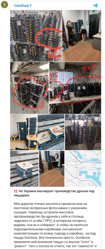 Las declaraciones de Polonchuk se producen pocos días después de que aparecieran en Internet imágenes no verificadas que muestran lo que parece ser un centro de ensamblaje descentralizado de drones en Kiev. Las fotos exhiben pilas de drones FPV escondidos dentro de cajas de pizza Domino’s.