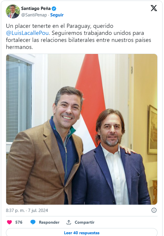 Por su parte, el presidente de Uruguay respondió: «Gracias, Santiago, y a todo tu equipo. Trataremos de estar a la altura».