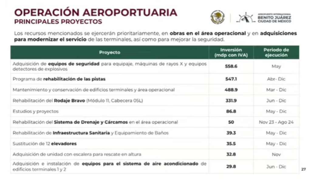 El contralmirante José Ramón Rivera Parga, quien es el nuevo director del AICM, anunció que para este año se invertirán 2 mil 200 millones de pesos en diversas obras de mantenimiento, conservación y modernización del aeropuerto capitalino.
