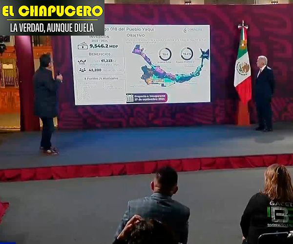 Dicho proyecto tuvo una inversión de 9 mil 546.2 millones de pesos, el cual beneficiará a 42 mil 200 yaquis una vez concluido el próximo 27 de septiembre de 2024.
