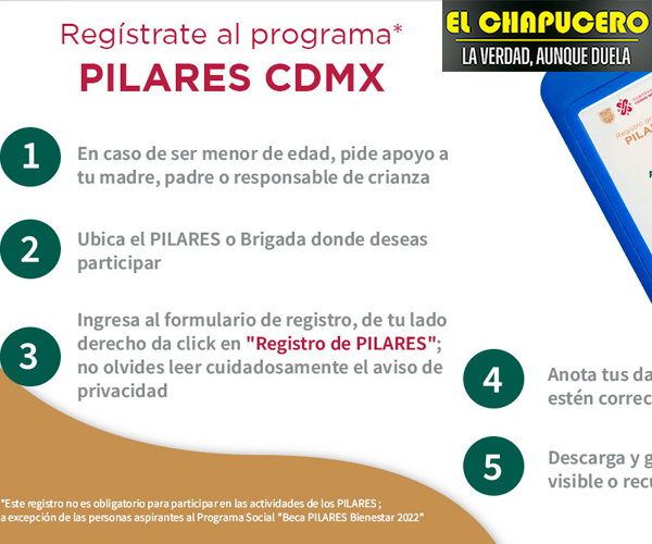 - Ser usuario de los centros PILARES y residente de una zona donde se encuentren ubicados estos centros en CDMX