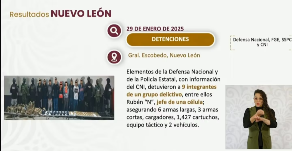 - En Nuevo León se logró detener a 9 integrantes de un grupo delictivo, propiciadores de violencia en la región.
