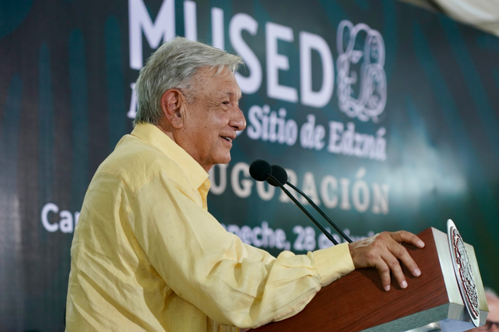 El presidente Andrés Manuel López Obrador inauguró este viernes el Museo de Sitio de Edzná, en Campeche, que expondrá la grandeza de la cultura maya como parte del proyecto Tren Maya en el sureste del país.