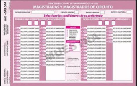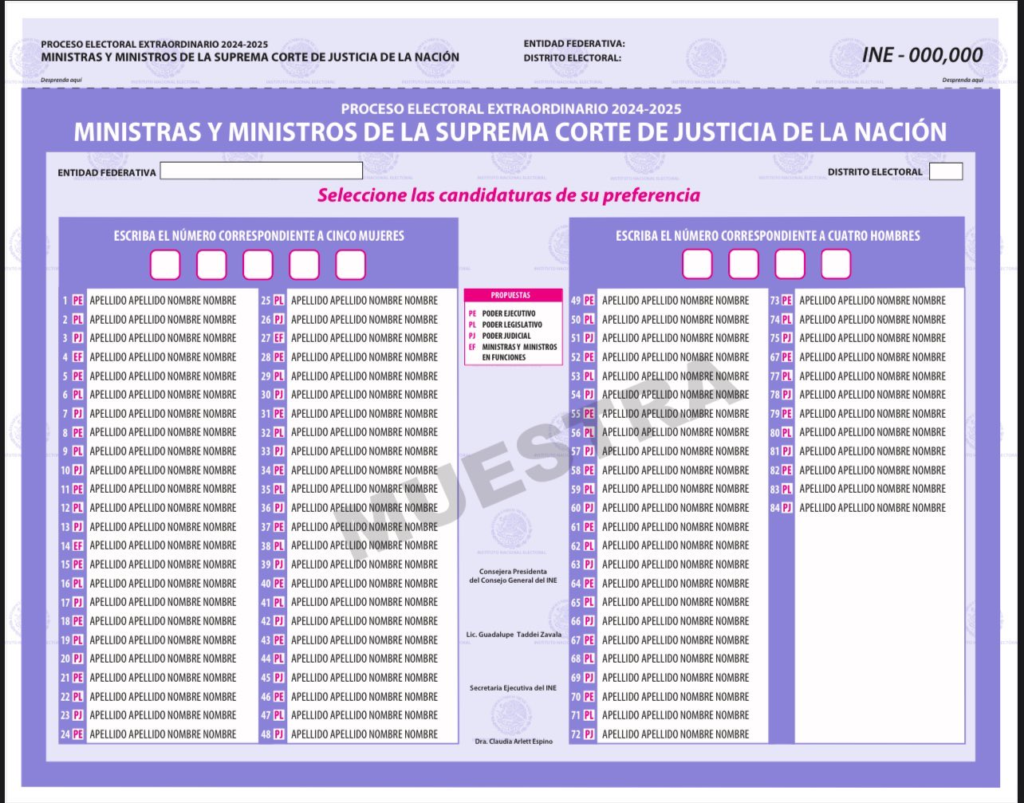 En agosto, la Secretaría de Gobernación había sugerido un formato de boleta para la elección Judicial. En ese primer boceto, al reverso de la papeleta estaban los nombres de los candidatos postulados, mientras que en el anverso se anotaban los nombres por los cuales se votaba.