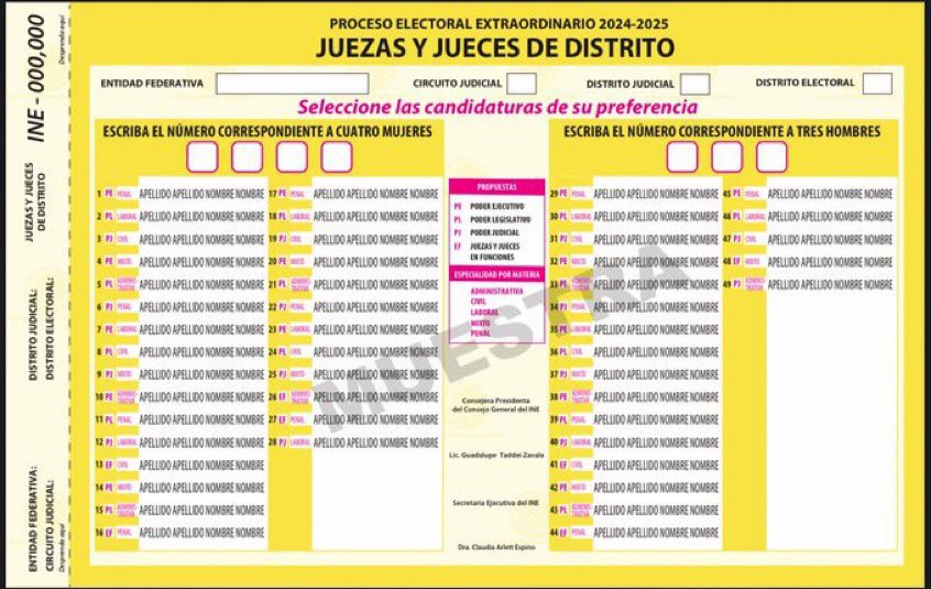 El próximo 1 de junio se realizará la elección del Poder Judicial, por lo que el Instituto Nacional Electoral (INE) ya trabaja en el diseño de las boletas que se utilizarán para el proceso.