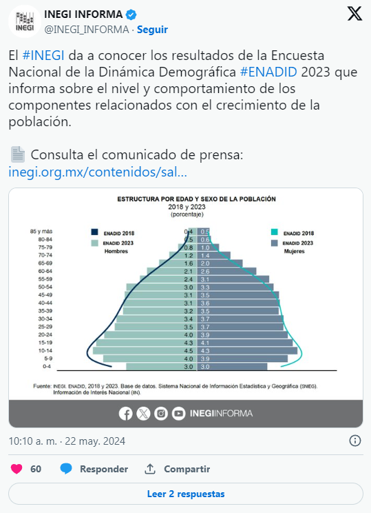 La Enadid 2023, también, señaló que aproximadamente 1.2 millones de personas dejaron el país entre 2018 y 2023, un aumento de 760,000 personas, con respecto al periodo 2013-2018.