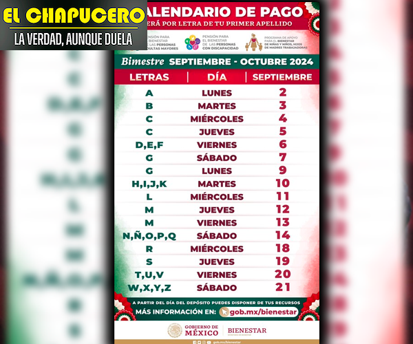 En pleno mes patrio, la dependencia informó que se realizará una pausa en la dispersión de pagos, debido a las celebraciones por la Independencia de México, a partir del domingo 15 de septiembre y hasta el martes 17.