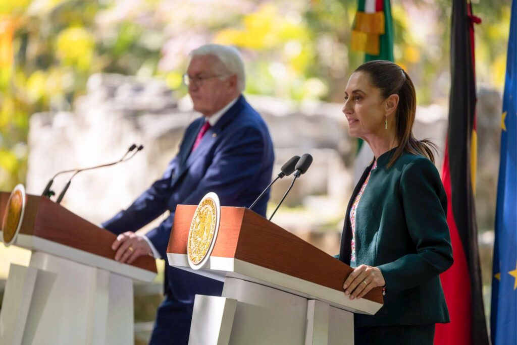 La Presidenta de México, Claudia Sheinbaum Pardo, recibió este miércoles al Presidente de la República Federal de Alemania, Frank-Walter Steinmeier, en el Museo Maya de Cancún, Quintana Roo, en un encuentro oficial que incluyó la entonación de los himnos nacionales y la fotografía protocolaria de ambos mandatarios.