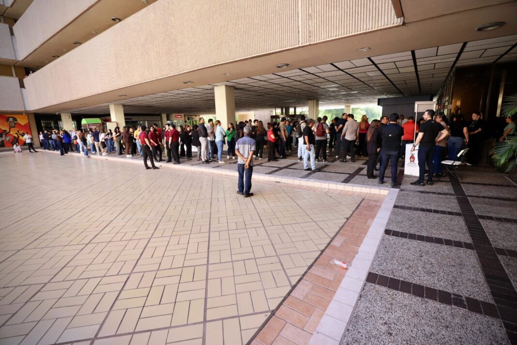 De nueva cuenta, se registró una importante afluencia de la población en el módulo de vacunación contra el sarampión instalado por la Secretaría de Salud en Palacio de Gobierno.