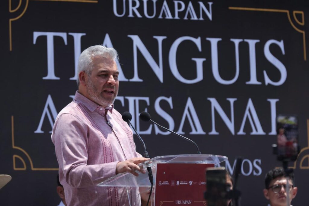 Acompañaron al gobernador los titulares de las secretarías de Turismo, Roberto Monroy; de Desarrollo Económico, Claudio Méndez; y de Educación, Gabriela Molina; la presidenta de la Unión Estatal de Artesanos, María Emilia Reyes; senadoras y senadores de la república; el alcalde de Uruapan, Carlos Manzo; así como autoridades federales, estatales y municipales.