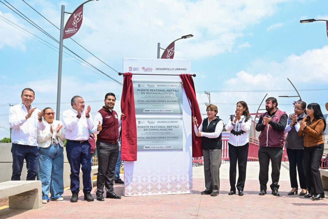 En este 2026, Año de las Obras en el Estado de México, la gobernadora Delfina Gómez Álvarez inauguró el Puente Peatonal «Neftalí», una moderna infraestructura que une las colonias Ejidos de San Agustín, en Nezahualcóyotl, e Israel, en Chimalhuacán, brindando un paso seguro y digno a más de 25 mil habitantes de ambas demarcaciones.