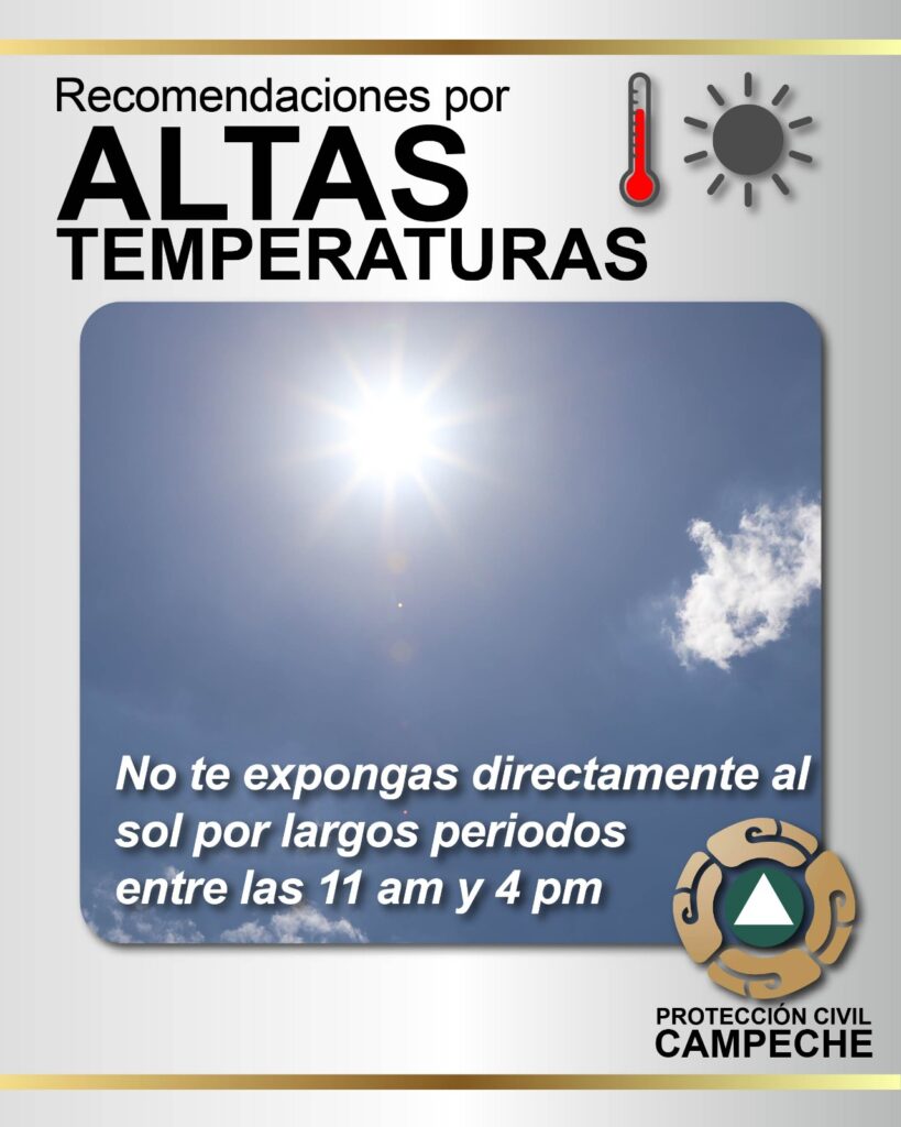 La Secretaría de Protección Civil de Campeche recomienda a la población a extremar precauciones para evitar golpes de calor y cuadros de deshidratación.