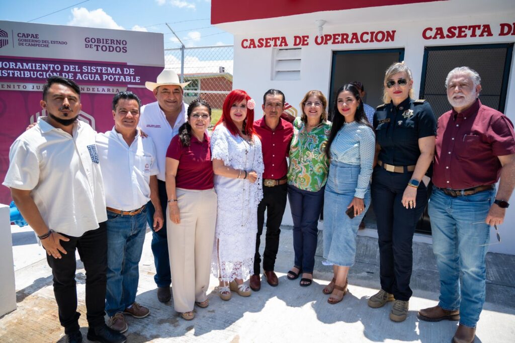 En la localidad de Benito Juárez, la licenciada Sansores inauguró el rehabilitado y modernizado sistema de agua, obra realizada en dos etapas con una inversión total de $21.7 millones invertidos en la instalación de 13,1 kilómetros de tubería domiciliaria, 474 tomas de agua, y en la rehabilitación de dos tanques elevados.