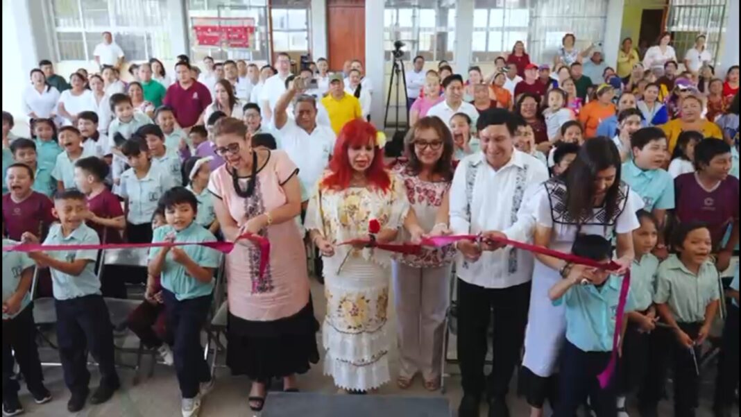 La gobernadora, Layda Sansores, puso en funcionamiento las aulas y espacios rehabilitados de la primaria “Lic. Manuel Gual Vidal”