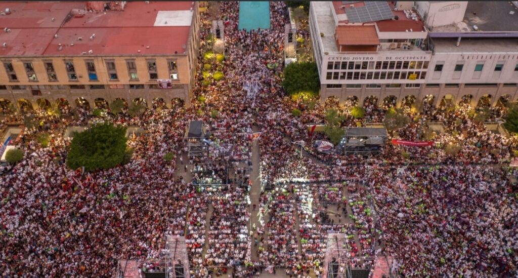 El pueblo de Jalisco ya se decidió por el Cambio Verdadero y miles de personas abarrotaron el Centro de la ciudad para manifestar el respaldo a Claudia Delgadillo para que sea la primera gobernadora de Jalisco, asimismo, la doctora Claudia Sheinbaum, candidata a la Presidencia de la República, hizo eco de su voz y sus propuestas para consolidar la Cuarta Transformación de la vida pública nacional, y que Jalisco sea punta de lanza. Nunca más confrontación con el Gobierno Federal.