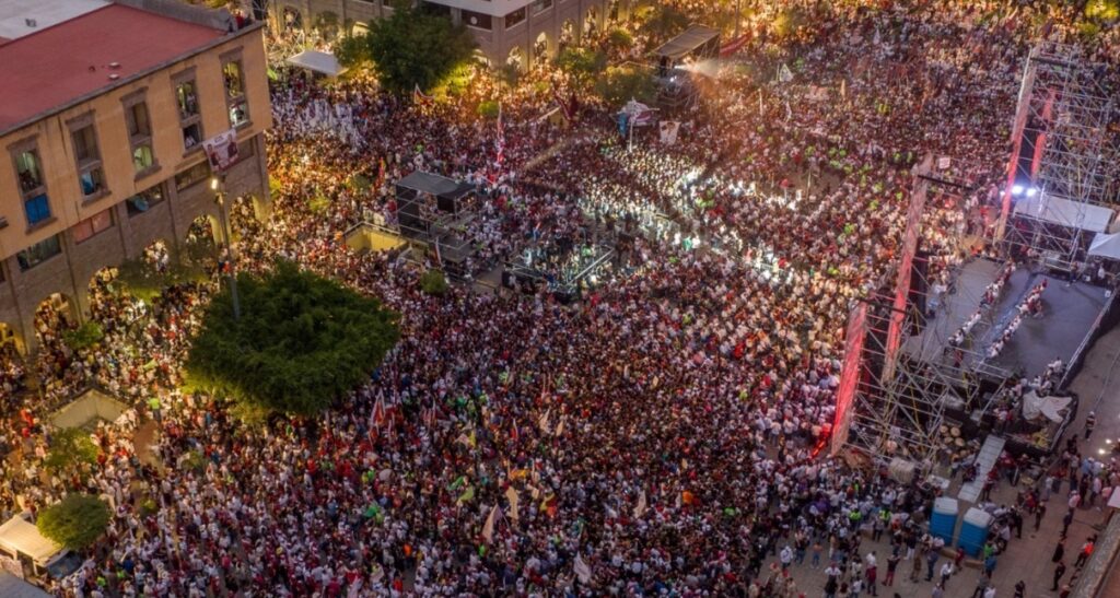 Fue a las afueras del Instituto Cultural Cabañas, en el Centro Histórico de Guadalajara y ante más de en 80 mil personas donde la abanderada de la alianza Morena, PT, PVEM, Futuro y Hagamos envió su mensaje de agradecimiento para las y los jaliscienses por su apoyo durante esta contienda, dijo que el próximo 2 de junio el cambio verdadero arrasará en las urnas.