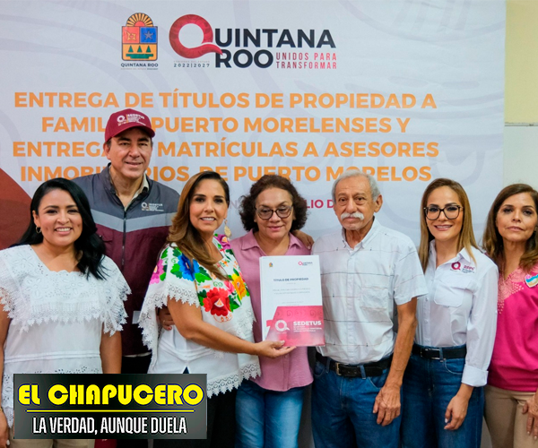 La gobernadora Mara Lezama Espinosa hizo justicia social a 17 beneficiarios de esta localidad, de Puerto Morelos, al entregarles sus títulos de propiedad, luego de varias décadas de incertidumbre jurídica sobre sus hogares.