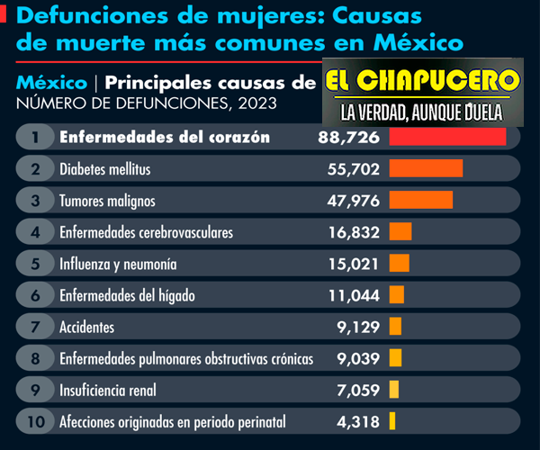 Estas tres causas en conjunto representaron el 54.6% del total de muertes de mujeres.