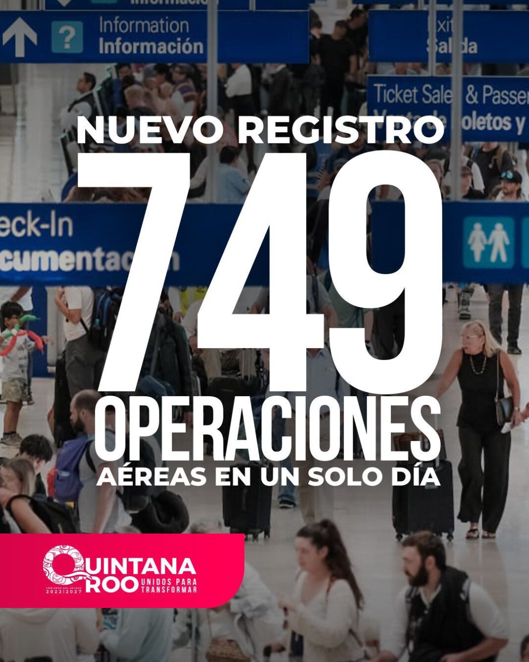 Quintana Roo alcanzó el fin de semana un total de 749 operaciones en sus 4 aeropuertos internacionales, posicionándose como la segunda cifra más alta en lo que va de 2026, de acuerdo con el registro anual del Caribe Mexicano, informó la gobernadora Mara Lezama Espinosa.