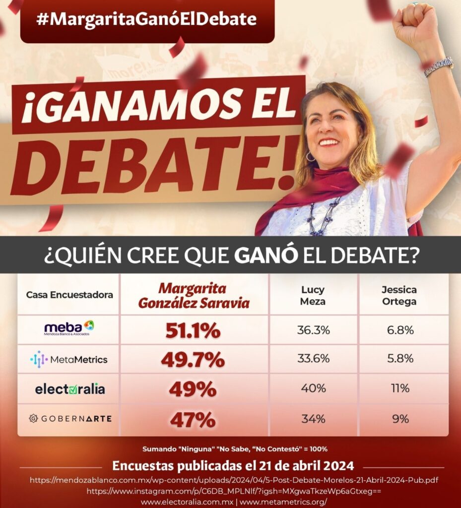 Se consolida Margarita González Saravia como ganadora del debate en Morelos