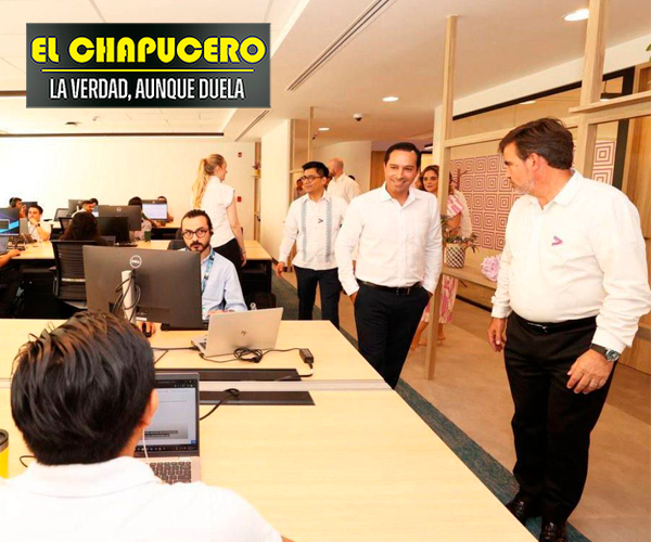 Vila Dosal, junto al director General de Accenture México, Jorge Castilla Ortuño, recorrieron las nuevas estaciones de trabajo del Centro de Tecnología Avanzada de la empresa ubicada en el Hotel Camino Real, al norte de la ciudad, y las cuales ofrecen empleo a yucatecos que atienden a 40 empresas de cuatro países desde el estado.
